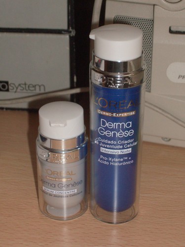 Outro segredo é o sérum e o cuidado de noite da DERMA GENÉSE. Há umas semanas andava com a pele totalmente de rastos: seca, sem brilho... e resolvi experimentar esta linha e os resultados forma visiveis no dia seguinte: a pele estava mais hidratada, mais bonita, tudo graças ao ácido hialurónico, que retém a água nas células e o Pro-xylane - uma molécula - que ajuda a manter a pele mais jovem. Gostei! Cada uma custa cerca de 17€, mas valem bem a pena ( até porque eu nem gostava muito dos produtos da L'Oreal!).