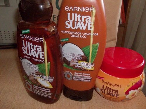 Também ácerca de um mês que o anúncio deste shampô começou a dar na TV e fiquei com vontade de experimentar esta linha da GARNIER. Tem também um cheiro incrivel e deixa o cabelo macio, prometendo alisar os cabelos rebeldes. Comprei além do shampô e do amaciador a máscara da linha MANGA E FLOR DE TIARÉ, porque na linha de COCO E CHOCOLATE não tem máscara, mas ainda não a experimentei, mas cheira a óleos de praia. Destina-se aos cabelos secos e maltratados, o que não é dificil neste tempo de praia e de calor.