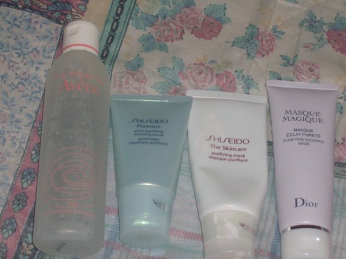 Como tratamentos semanais utilizo o WARMING SCRUB e a PURIFYING MASK da SHISEIDO para uma limpeza mais profunda da pele e a MASQUE ÉCLAT PURETÉ da DIOR para hidratar. Como complemento à limpeza utilizo a ÁGUA DE LIMPEZA da CORINE DE FARME que está numa embalagem da AVÈNE porque a embalagem gigante da 1ª não dá jeito nenhum! :)