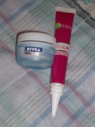 Como cremes de olhos utilizo o AQUASENSATION da NIVEA e o ULTRALIFT da GARNIER e devo dizer que apesar de serem baratuxos são muito bons!