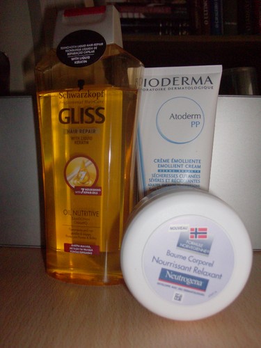 Como hidratantes de corpo, neste momento estou a usar o BAUME CORPOREL NOURRISSANT RELAXANT da NEUTROGENA, com uma textura tipo geleia que espalha e absorve super rápido, hidrata e tem um cheirinho muito agradável. Para os braços e pernas uso algo mais hidratante, porque se não o fizer tendem a ficar com eczemas, por isso, utilizo o ATODERM PP da BIODERMA, que trata e previne a secura grave e recorrente da pele. Não tem cheiro, é muito cremoso, mas não deixa pelicula gordurosa e absorve num instante. Podem comprar ambos na farmácia.