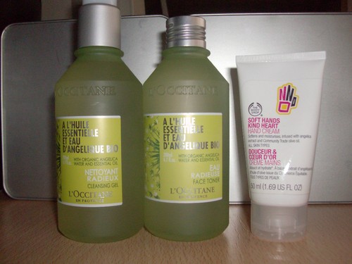 Os outros dois são da mais recente linha de cuidados faciais da L'OCCITANE à base de óleo essencial de Angélica - o NETTOYANT RADIEUX e a EAU RADIEUSE. Esta linha promete hidratar e deixar a pele luminosa. Além dos produtos de limpeza tem também hidratantes de rosto e olhos http://www.loccitane.pt/hidrata%C3%A7%C3%A3o-e-vitalidade,31,2,12447,0.htm.