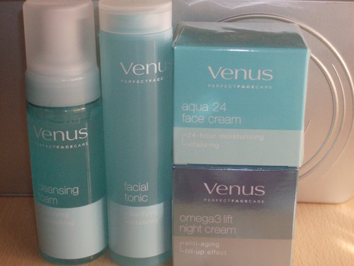 Já vos tinha falado desta marca, exclusiva da Douglas, e não resisti a comprar mais uns produtinhos! São eles a CLEANSING FOAM e o FACIAL TONIC que limpam a pele com suavidade e os cremes AQUA 24 FACE CREAM, com água marinha, extrato de Babassu (tipo palmeira) e de romã, contendo ainda vitamina E; o OMEGA3 LIFT NIGHT CREAM tem também extrato de plankton marinho, manteiga de karité e vitaminas que nutrem e regeneram a pele durante a noite. Preços entre os 9,90€ e os 20,90€.