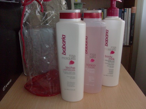 Este, de ROSA MOSQUETA, contém um leite de limpeza, um tónico e um leite de corpo com tamanhos XL de 400ml.
