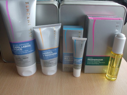 É assim a linha de cuidados de rosto do EL CORTE INGLÉS, ALL INTENSE, outra novidade para a minha pessoa. Tem, sobretudo, produtos anti-envelhecimento, mas encontrei coisas bem interessantes a preços entre os 2, 69€ (o creme de olhos e o hidratante) e os 7,90€ (o óleo de rosa mosqueta).