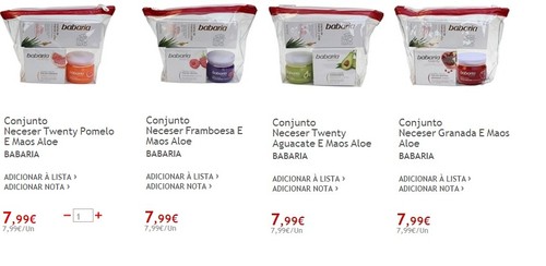 Nos hipermercados encontram também estes necessaires com creme de mãos e creme de rosto da nova linha BABARIA. Os preços são do JUMBO, mas também estão à venda no CONTINENTE.